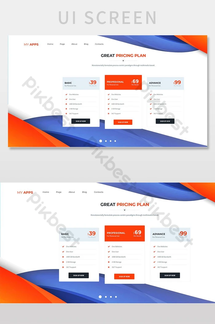 価格表セット。3つの料金プラン。ビジネス向けの価格表。スターター、ビジネス、プレミアムプラン。クリーンなモダンなUI UXデザインテンプレート。青の背景に白いカード。フラットベクターイラストのイラスト素材・ベクターImage 200016424。