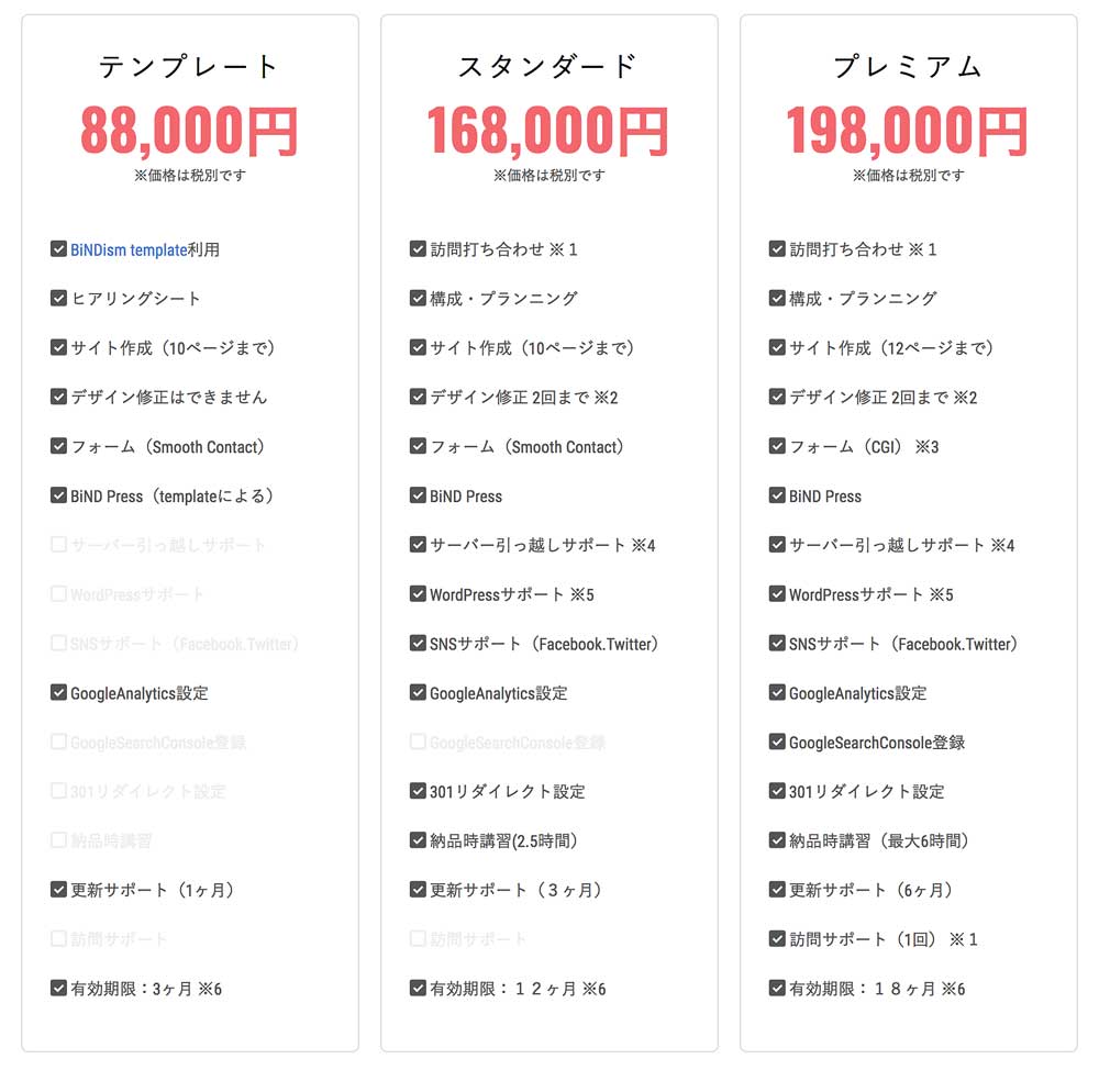 contents_003 プラン別の料金などで比較しやすい横並びのレイアウト – BiNDism Blog。