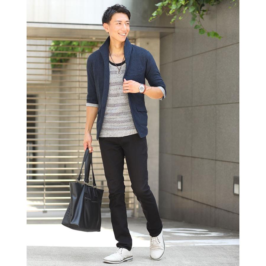 紺ジャケット×グレーニット×黒パンツのコーディネートセット 210 : MENZ-STYLE メンズスタイル - 通販 - Yahoo!ショッピング。