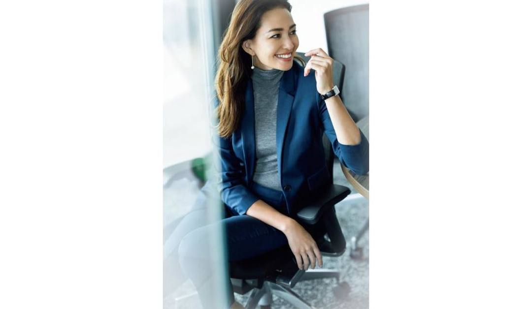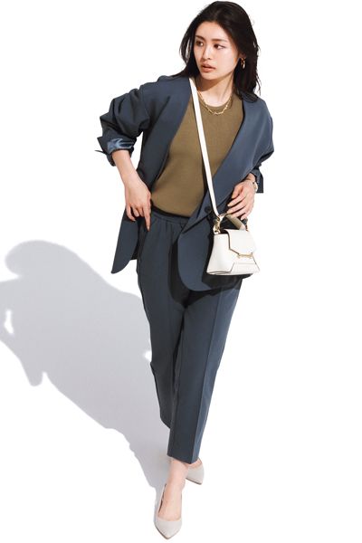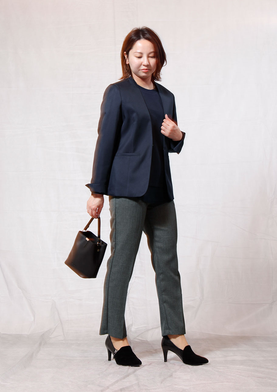 ネイビージャケット×グレーパンツはオフィスコーデの定番カラー - セシール cecile。