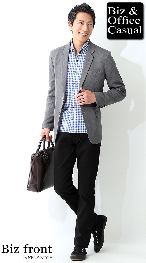 グレージャケットのビジネス・メンズオフィスカジュアルの着こなしグレージャケットに合うパンツビジネス・オフィス・スマートカジュアル専門通販。