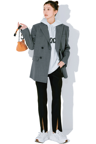 今日のコーデ 黒ジャケット+グレーパンツの辛口コンビで上級マニッシュコーデにトライ!<川口ゆりな>MORE。