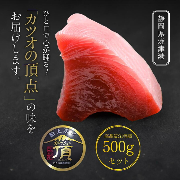 楽天市場 S-1 ランク カツオ 刺身 かつおの頂 500g 一本釣り 新鮮 静岡県産 瞬間冷凍 極上の鮮度と旨味 贈答用 刺身 鰹 魚 国産 便利ストック 贈り物 お中元 ギフト 父の日 敬老の日 日光水産 ヒルナンデス : 日光丸食堂 楽天市場店。