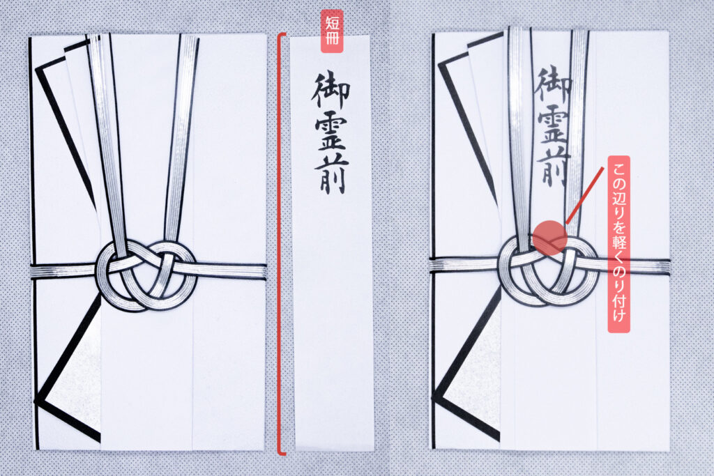 香典袋に付ける短冊は糊付けしなくてもいいの?水引に挟むだけでいいの。