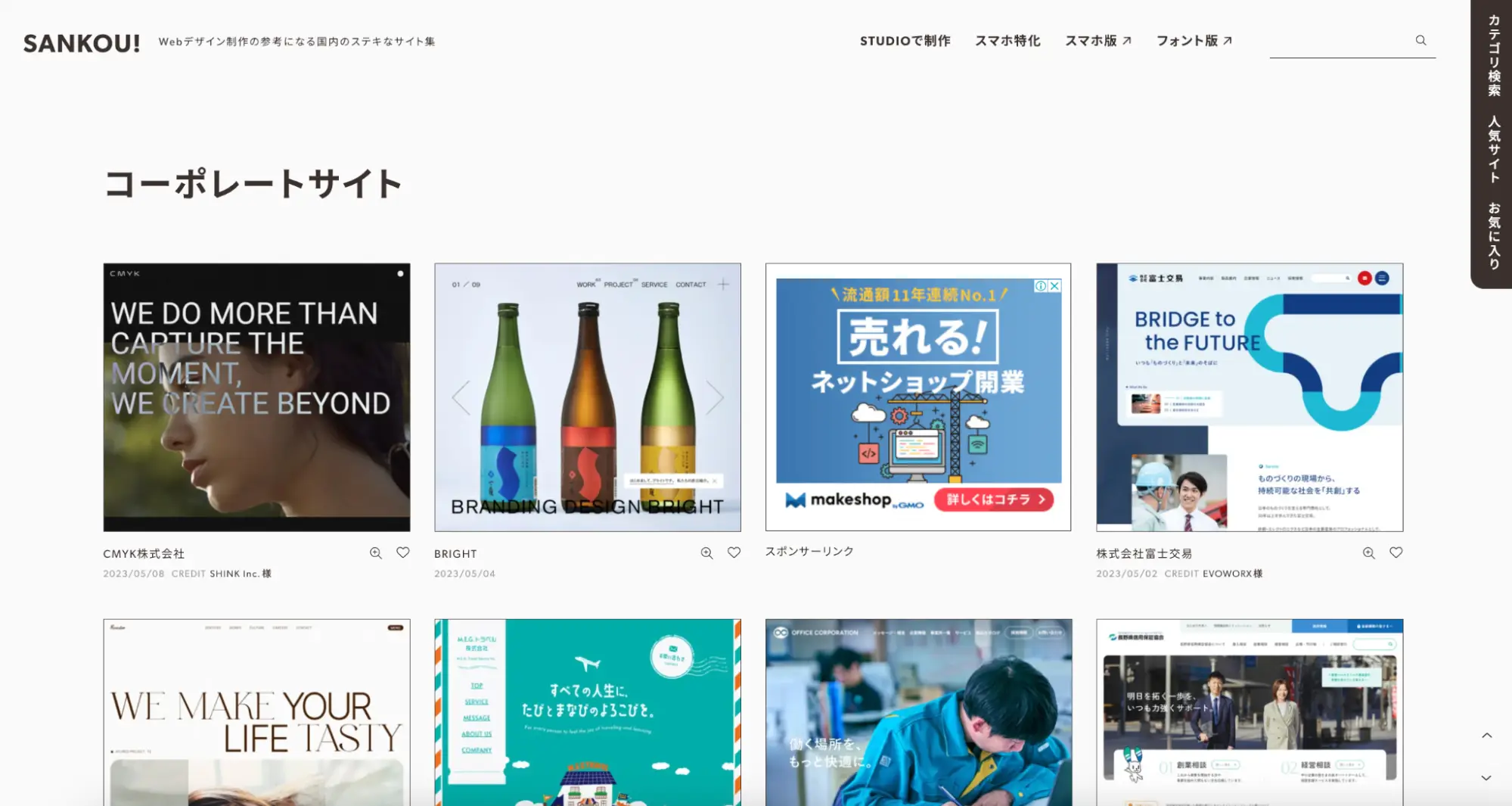 コーポレートサイトSANKOU!Webデザインギャラリー・参考サイト集。