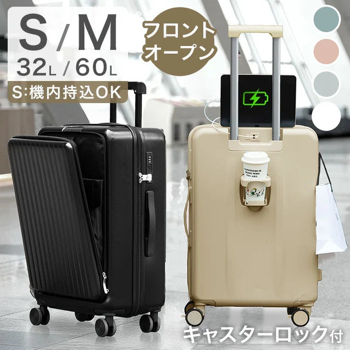 dショッピング 公式 スーツケース HoldOn TRAVEL Sサイズ 35L Mサイズ 51L キャリーケース フロントオープン 前開きUSBポート付き 大容量 多収納ポケット トランク 海外旅行 国内旅行 かわいい おしゃれ 送料無料 HOT-SCPM004-20NFHOT-SCPM004-24NFカテゴリ:の販売。