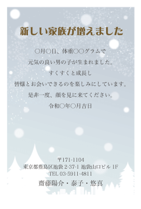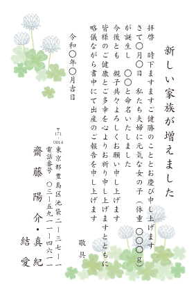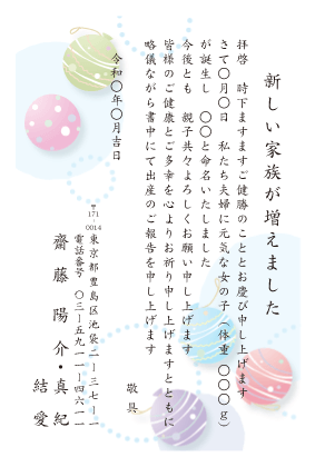 出産報告 はがき文例1枚~即日印刷プリントメイト。