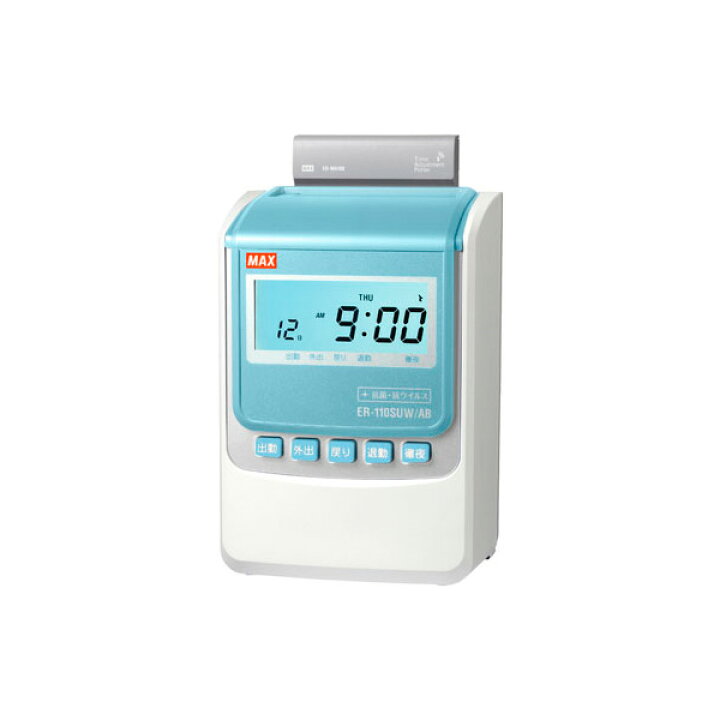 楽天市場 タイムレコーダー マックス ER-110SUW AB 抗菌仕様 電波時計内蔵 3年保証本体 max タイムカードレコーダー 事務用品 タイムレコーダー マックスタイムレコーダー マックスタイムカード タイムカード 勤怠管理 MAXタイムレコーダー タイムレコーダ 壁掛け 非。