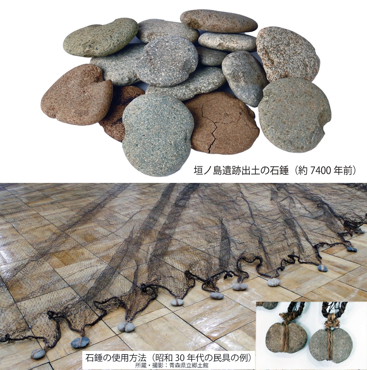 森のちゃれんが"北海道博物館◇開館10周年◇ on X: "北の縄文世界と国宝垣ノ島遺跡の竪穴建物跡の床面から、海で魚を捕るための漁網の錘おもり がまとまって出土しています。これは扁平な自然石の側縁を欠いて作った石錘 せきすい と言われるもので、なんと昭和30。