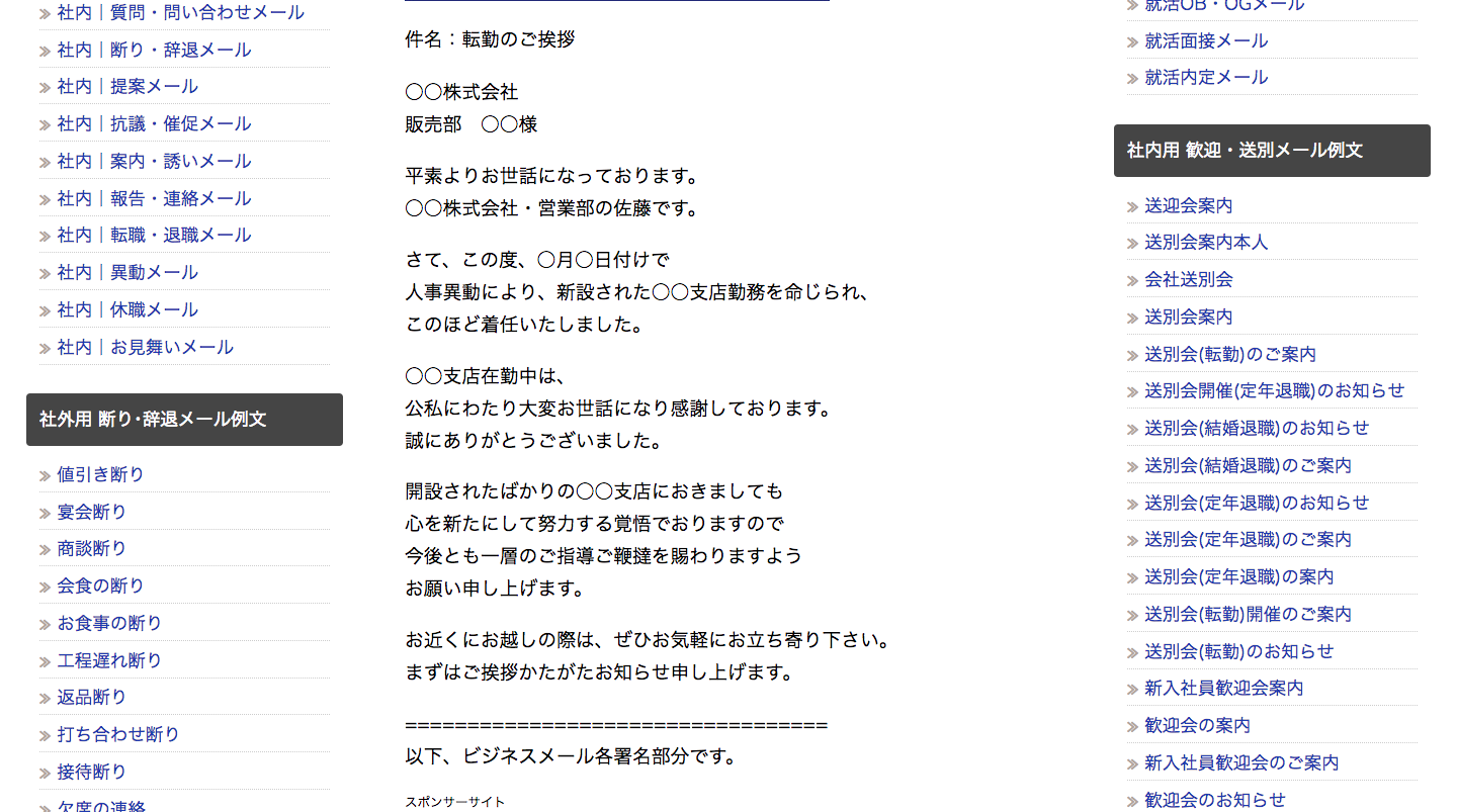 異動先・社内外向けの挨拶メール好感度を上げる例文集ビジネス文書All About。