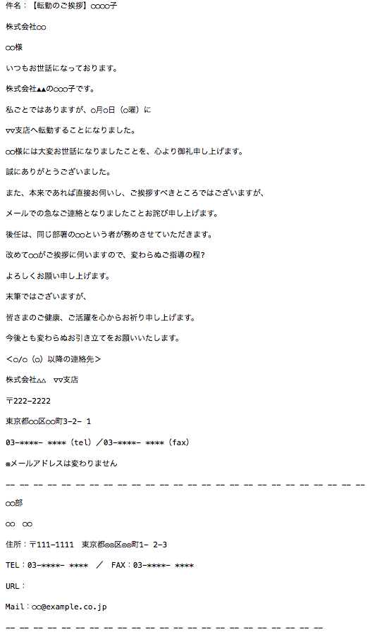 転勤挨拶メールが作成できるテンプレート書き方・例文あり 社内・社外向けBOXIL Magazine。