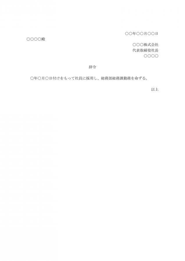 新卒採用配属辞令のテンプレート―Word形式のファイルをダウンロード可能│無料ダウンロード『日本の人事部』。