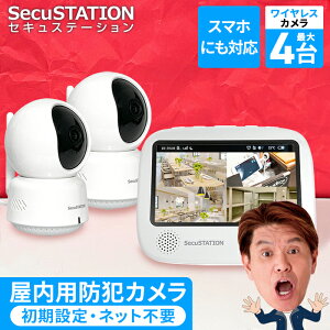 電源を入れればすぐ使える☆日本メーカー製防犯カメラ 録画機能付き モニターセット ワイヤレス ネット環境なし wifi不要 家庭用 工事不要監視カメラ 360° 小型 wifi対応 1台~ 4台 セット 録画装置 自動追跡 SD録画 簡単 遠隔監視 無線 屋内 室内 モニター付きTB53K。