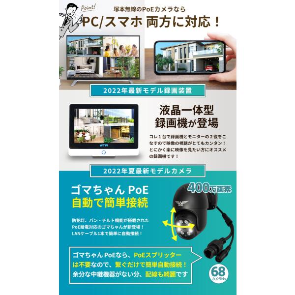 防犯カメラ 屋外 屋内 室内 監視カメラ 家庭用 PoE 最大4K800万画素 防犯カメラ2・4台とモニター一体型2TB録画機 セット WT – 防犯 カメラの塚本無線。