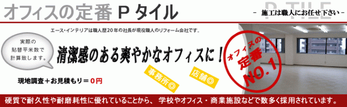 オフィス・店舗のPタイル張替え東京埼玉のリフォーム工事ならエース・インテリア。