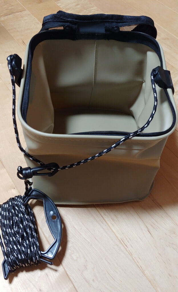 ダイソー活かしバケツのインプレ!ファスナー蓋付きでスカリにもおすすめ。