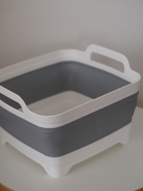 100均 「これは便利」とSNSで話題!購入者続出の折りたためるラバーバケット ベビーカレンダ。
