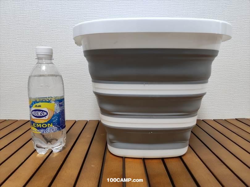 100均 ダイソーの折り畳みバケツがキャンプにおすすめジャグの水受けに使える – ろんキャン。