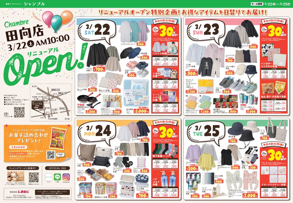 2025.3.22 土青森県 田向店リニューアルオープンセール! - 雑貨&ファッション シャンブルしまむらグループ。