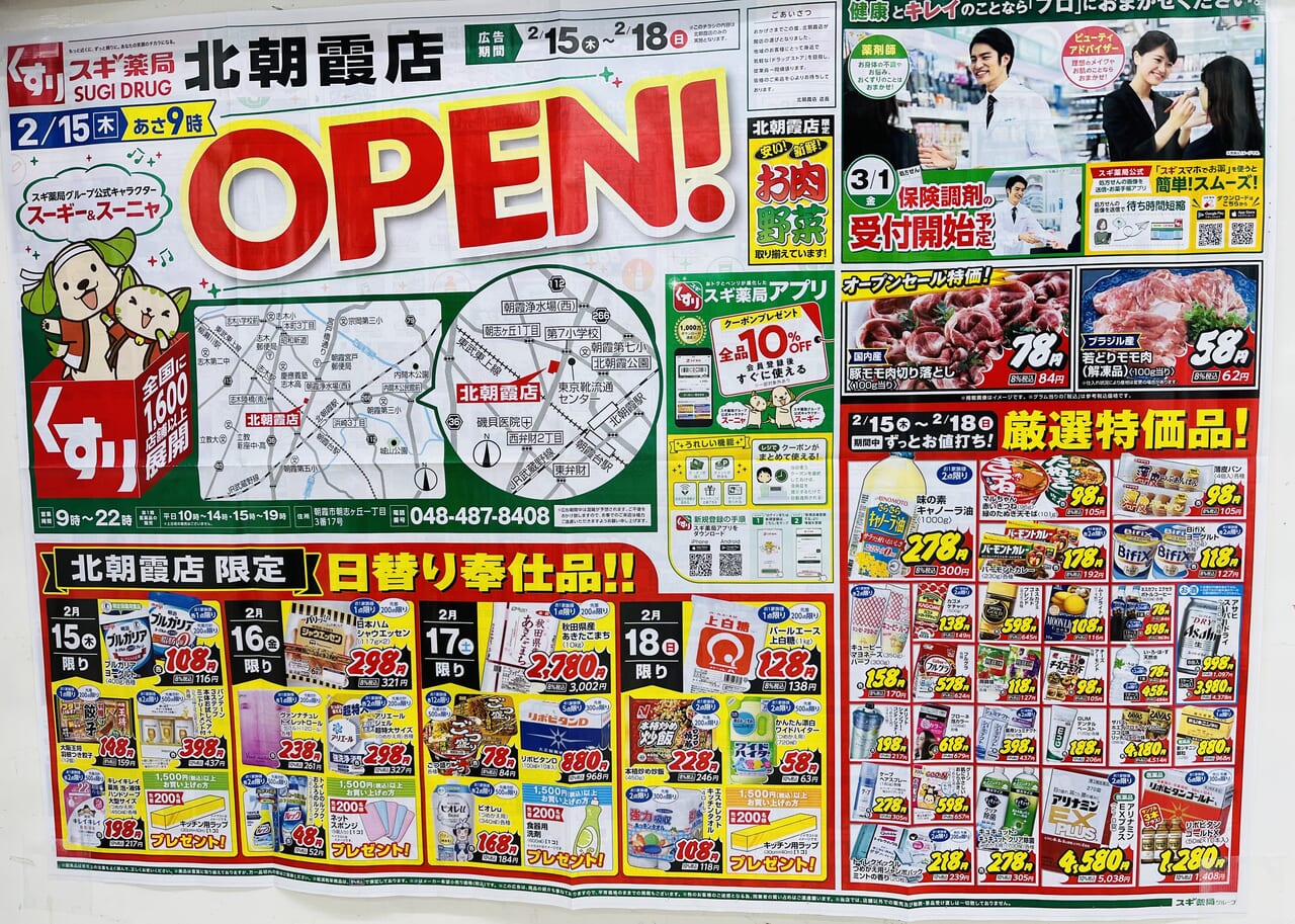 朝霞市 「スギ薬局」のオープニングセール☆ドラッグストアでまさかのお肉を大量買い!号外NET 朝霞市・和光市。