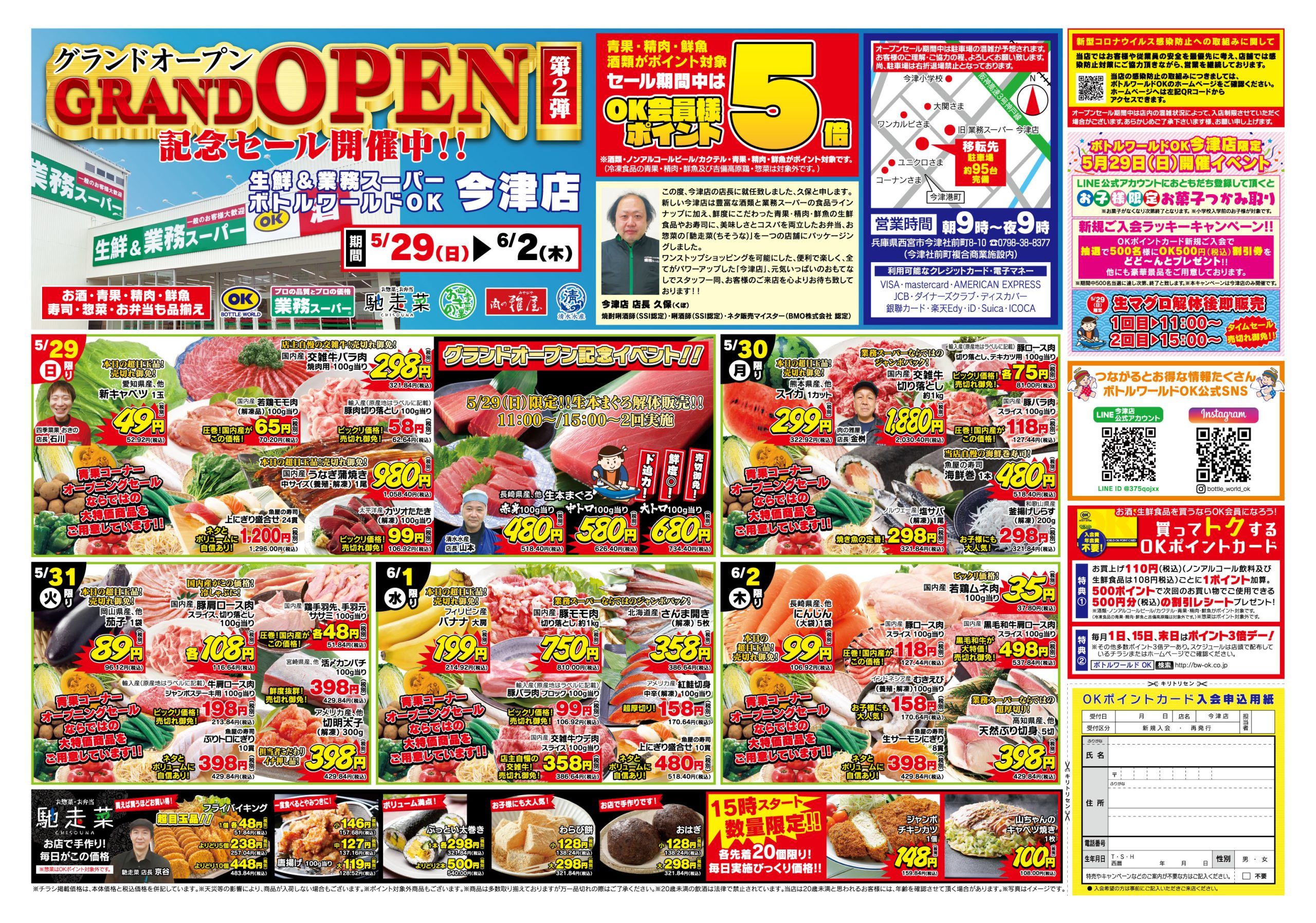 オープニングセール第2弾 絶賛開催中!! 生鮮&業務スーパーボトルワールドOK今津店 GRAND OPEN❕株式会社ボトルワールドOK。