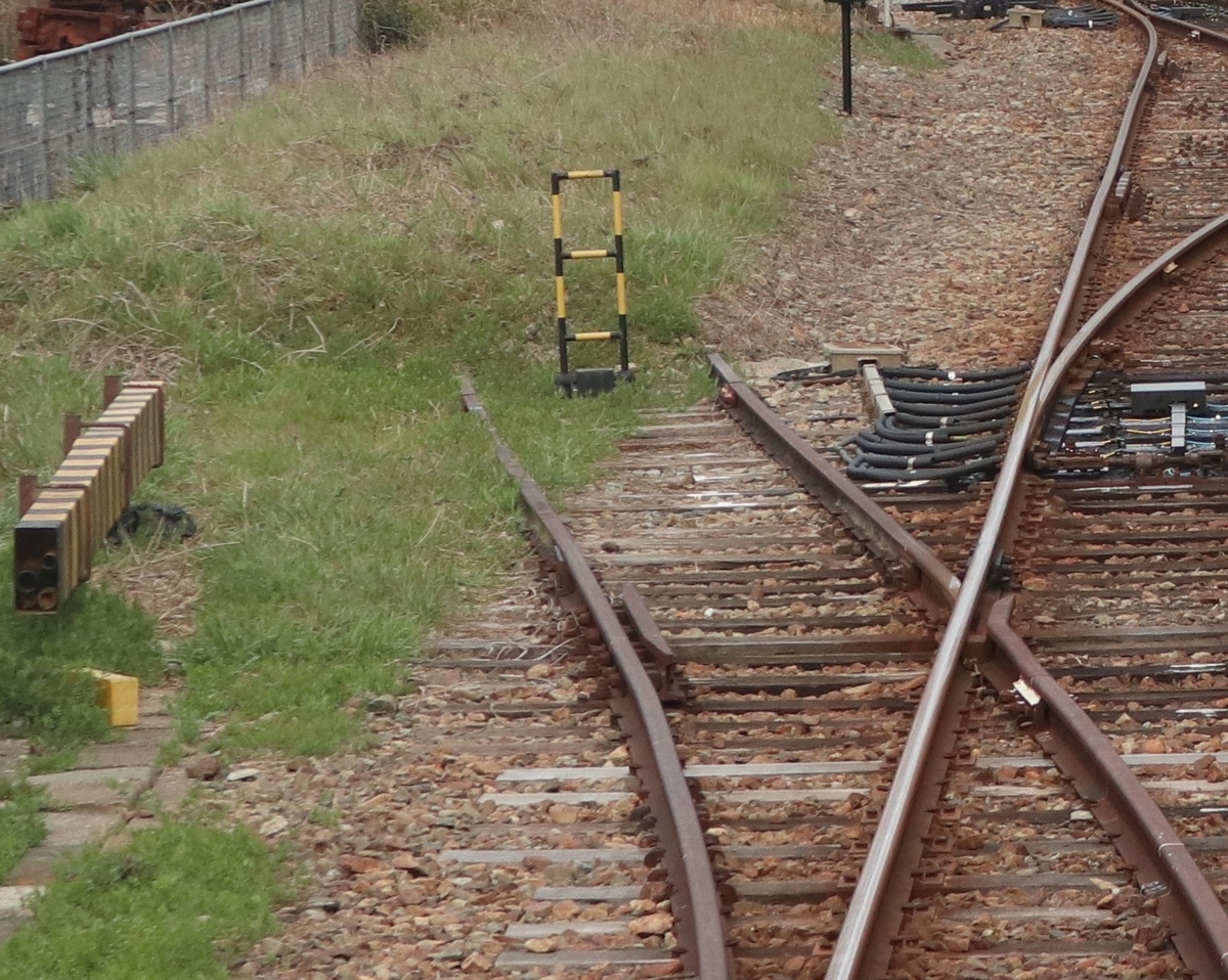あんぜんそくせん on X: "思うねんけど安全側線にありがちな黄色と黒の縞々のハシゴみたいな車止めがないと物足りない気がするんやけどhttps:t.co hf97ytiXF7"X。