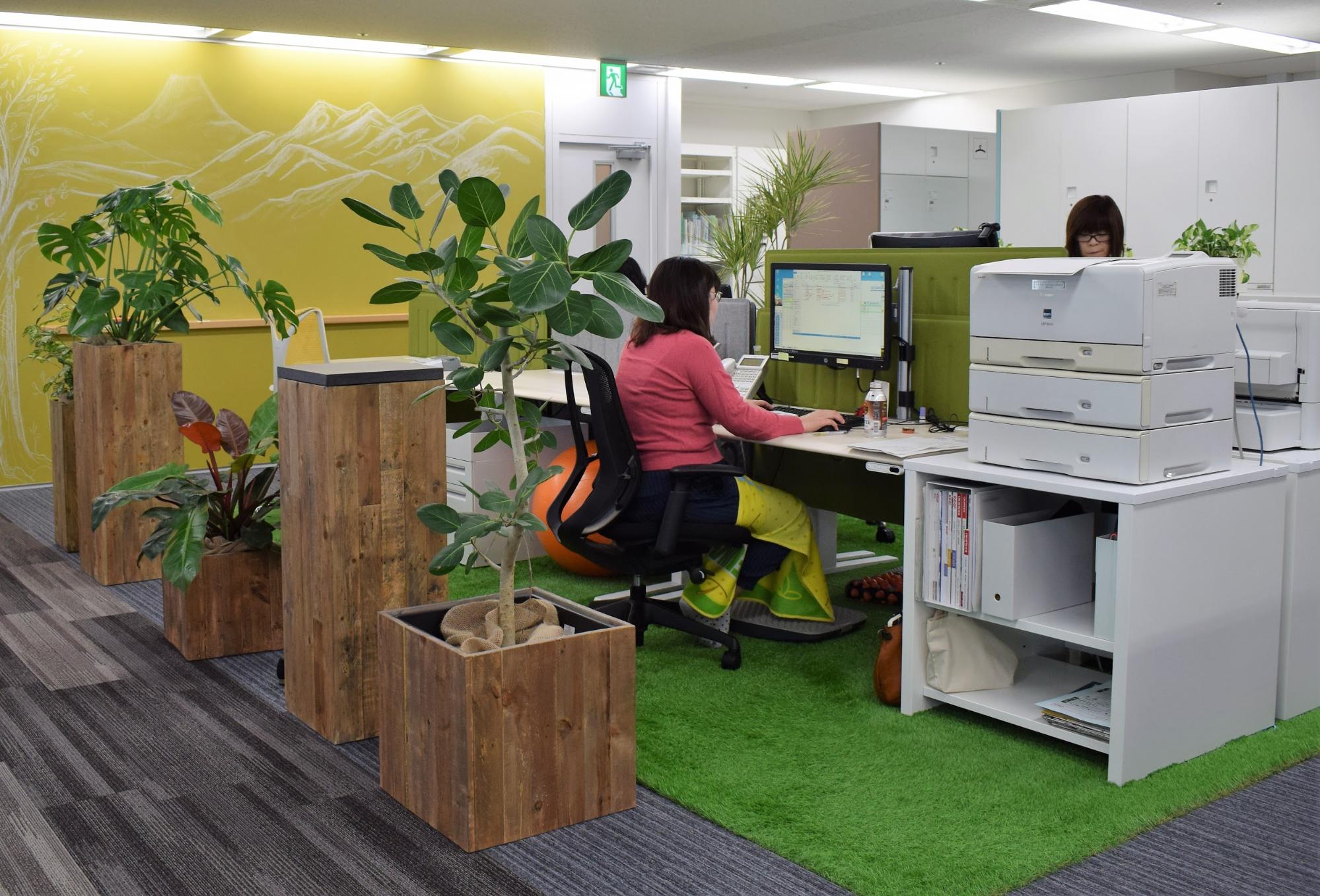 10 20 30坪の事務所にグリーンを配置したおしゃれなオフィスレイアウトオフィス緑化ラボ。