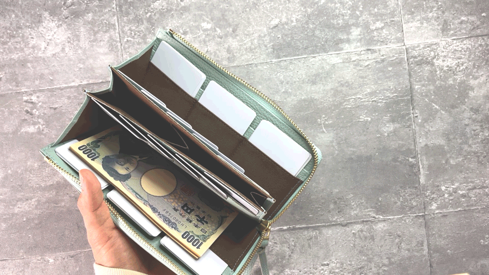 カード最大30枚 を膨らまずに収納可能。カード28枚が「美しく並ぶ」整う長財布 PROUDY_Donna – THE SHOP by S.Y.C。