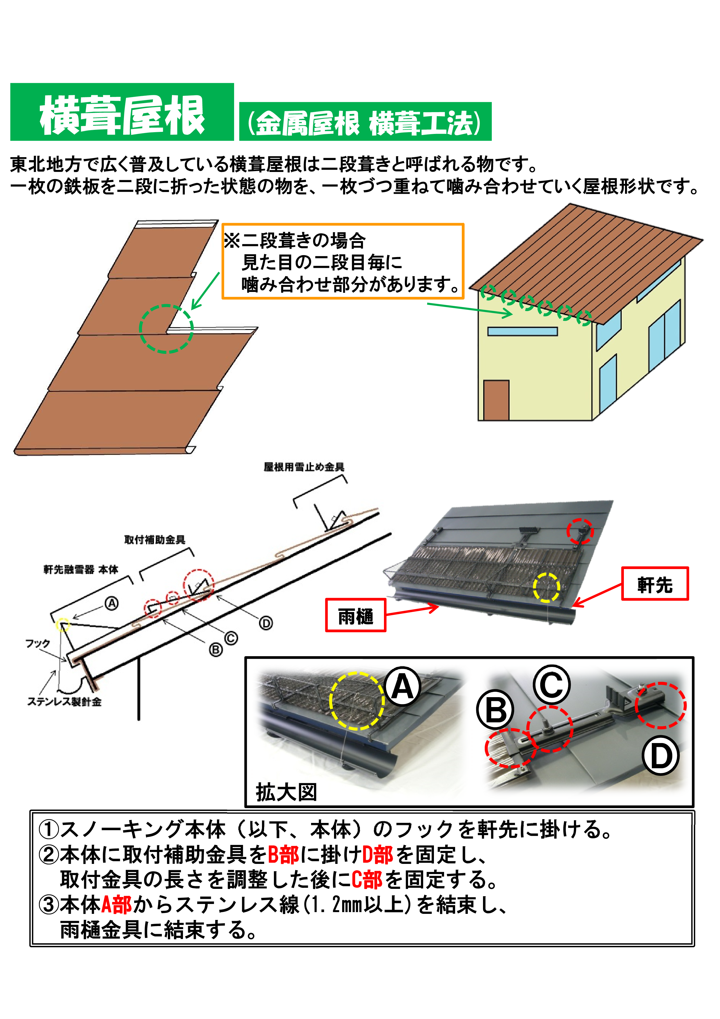 ○屋根用雪止融雪装置 取付方法JIGハラダオンラインショップ。
