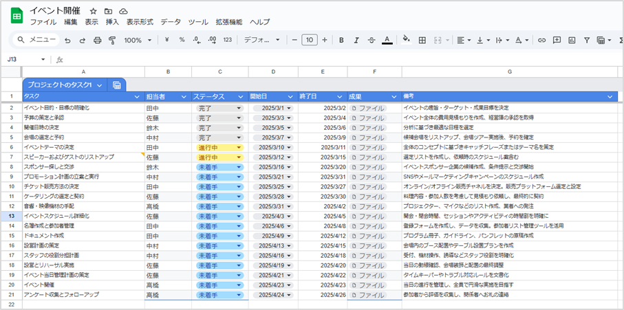 テンプレート付 スプレッドシートを用いたタスク管理表の使い方を解説Coneのコンテンツ制作所。