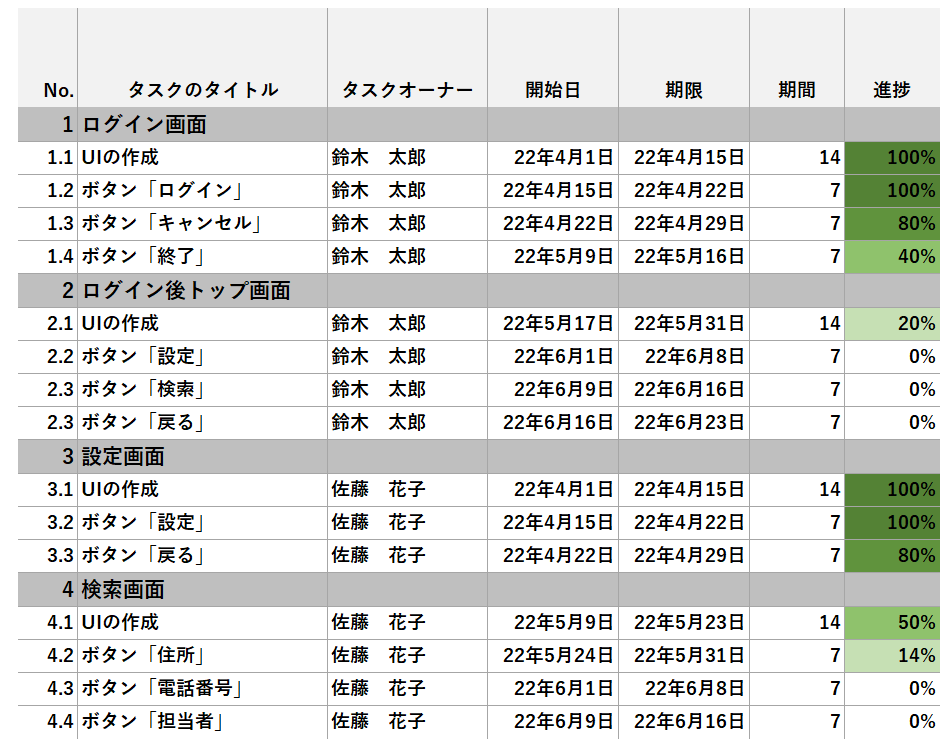 進捗管理表Excelテンプレート集無料・登録不要ビズ研。