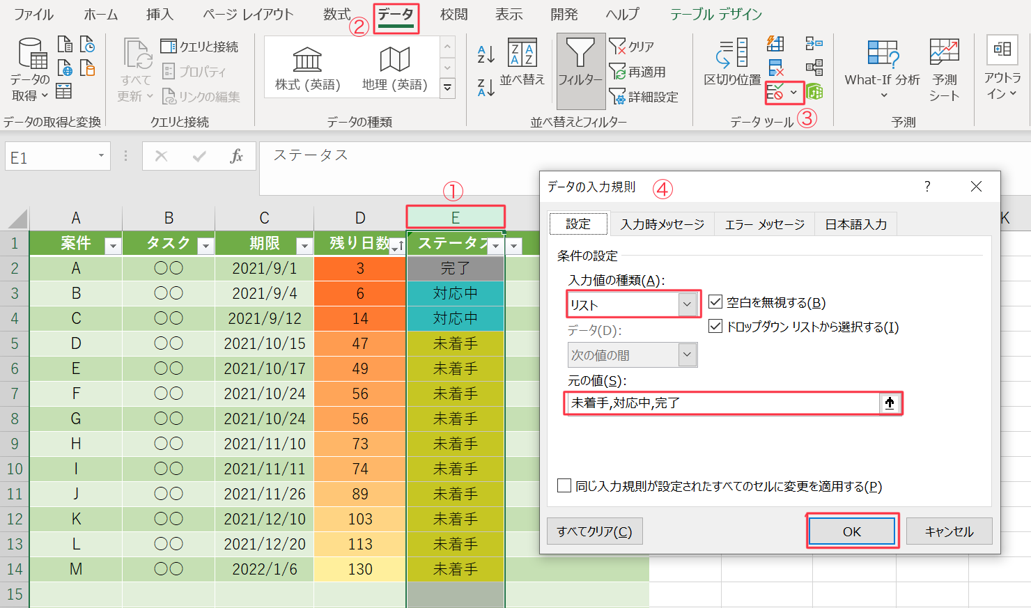 仕事や作業の納期を守る!エクセルでタスク管理を行う方法無料テンプレート付 マクロVBA。