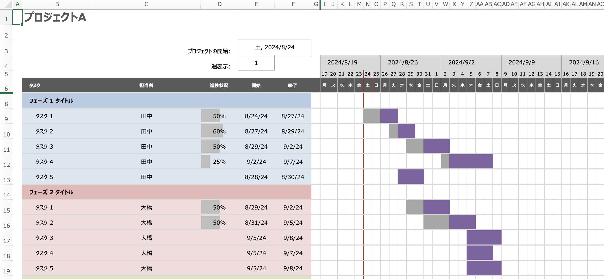 タスク進捗表Excel作成の書き方が簡単な無料テンプレート。