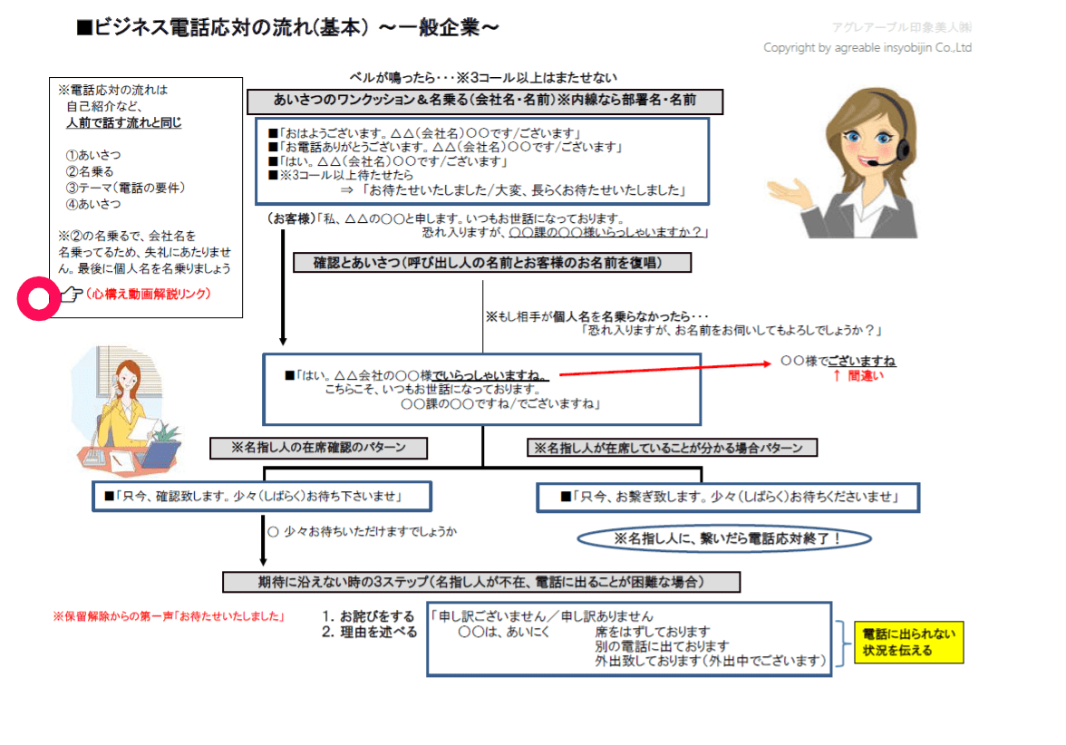 電話応対 基礎編 ビジネスマナーと基本マニュアル新入社員研修のICAREER<アイキャリア株式会社>。