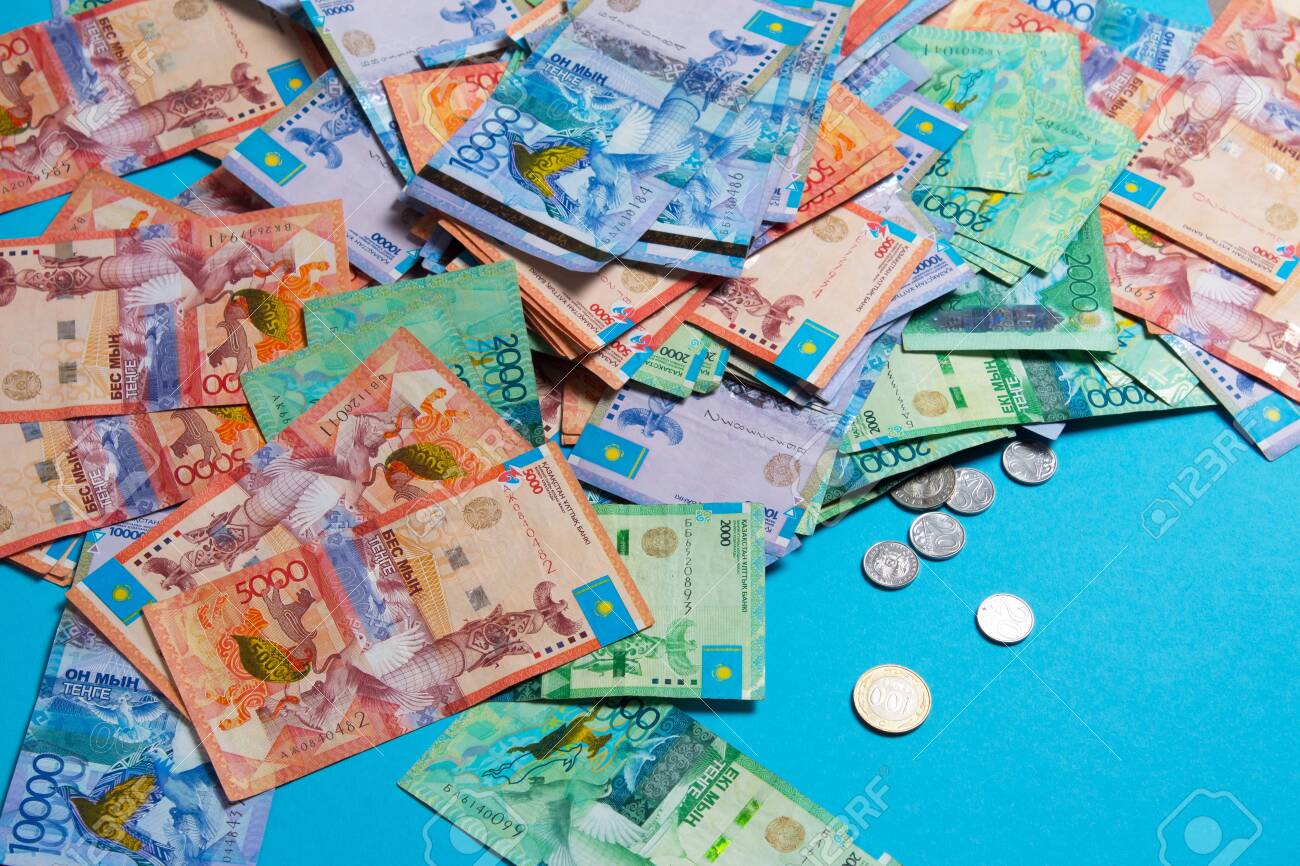 紙幣テンゲKZT。テンゲはカザフスタンの通貨です。カザフスタンの銀行の写真素材・画像素材 Image 136867913。