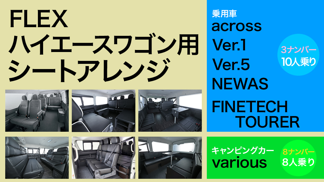 FLEXがお届けするハイエースワゴン用オリジナルシートアレンジを一挙公開。それぞれの違いを解説しますフレックス。