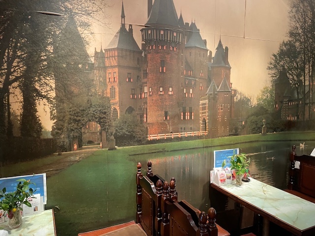 新宿御苑で整体の帰りに喫茶「騎士道」で夜ごはん。 壁には、どどんとお城の絵。煌びやかなシャンデリアとワインレッドの空間でハンバーグ定食をいただきました。なんだか不思議な組み合わせ! ▶︎騎士道 ▶︎東京都新宿区四谷4丁目28-20新宿御苑前駅新宿御苑。
