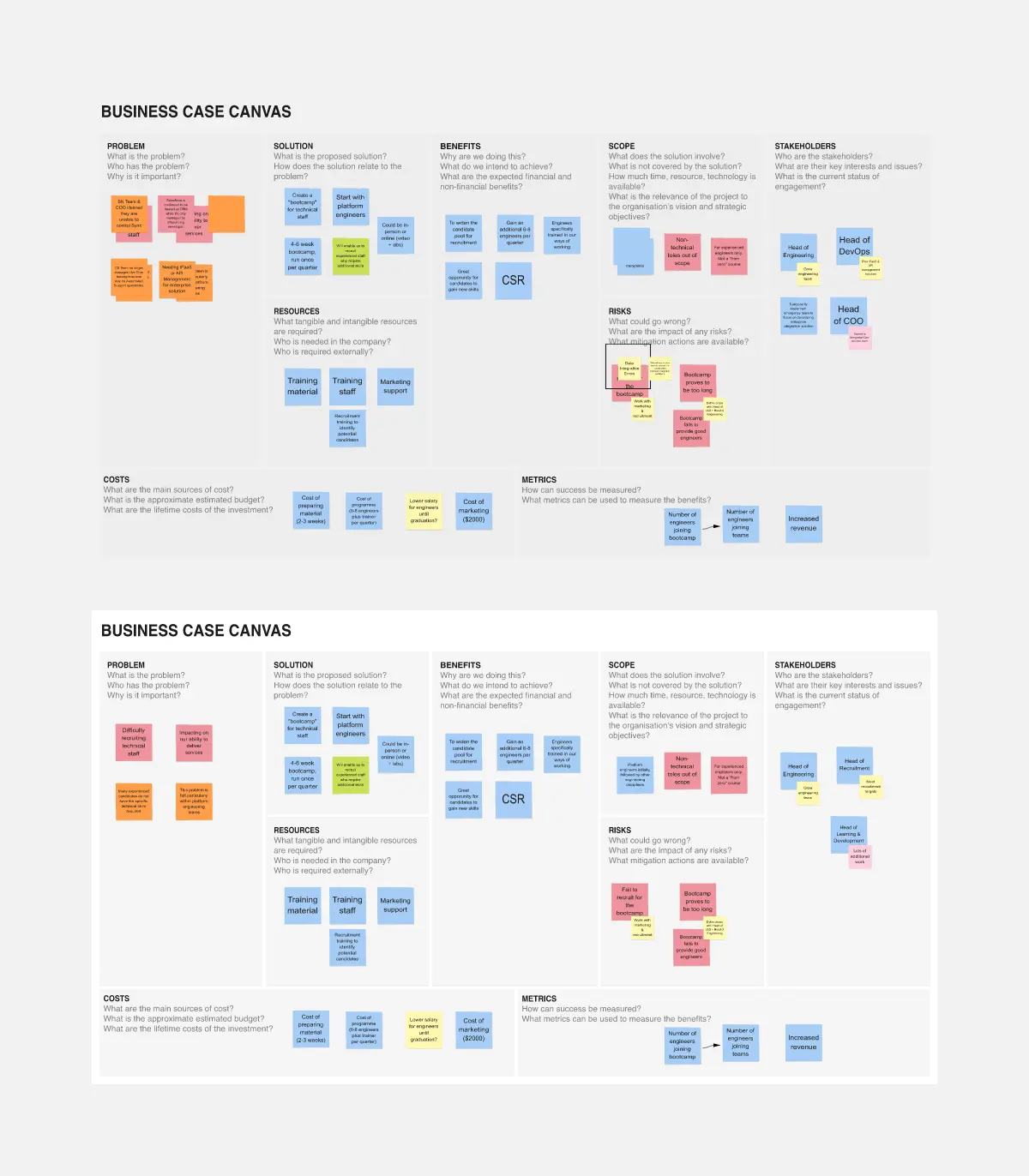 効果的な計画のためのビジネスケース テンプレートMiro。