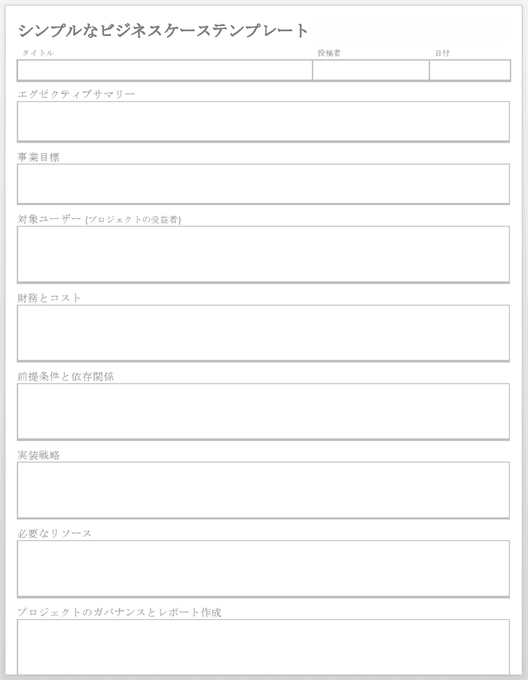 サンプルと例を含む 1 ページのビジネス ケース テンプレートが必須。