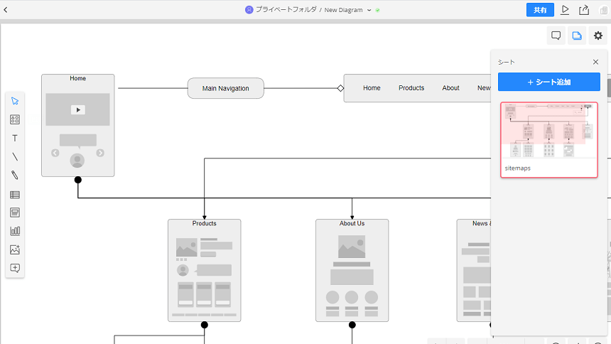 サイトマップ作成ツール - テンプレート・エクセル連携・自動生成機能Lucidchart。