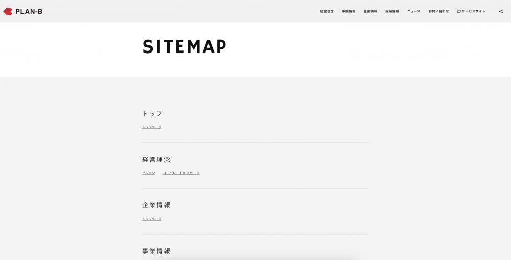 事例あり 参考になるサイトマップのデザインパターンとデザイン例株式会社PLAN-B。