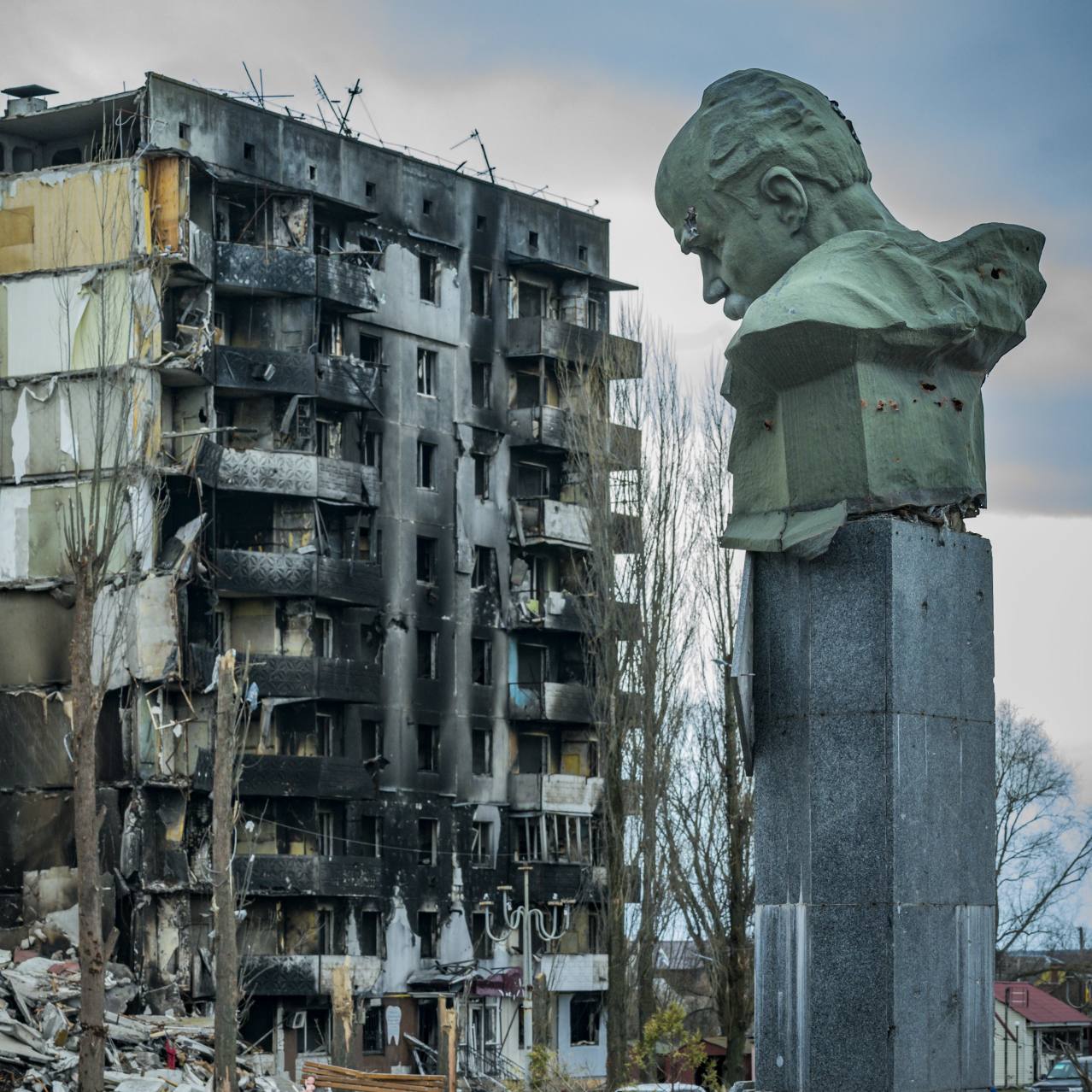 写真で比較するウクライナ侵攻3年 がれきを再活用する「惨劇の街」:朝日新聞。