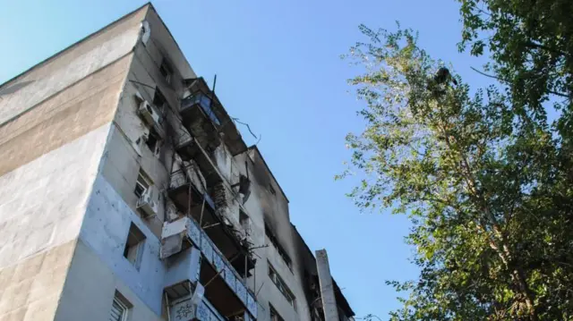 ウクライナ軍の攻撃で損壊した共同住宅=2 :ロシア軍ウクライナ侵攻 写真特集:時事ドットコム。