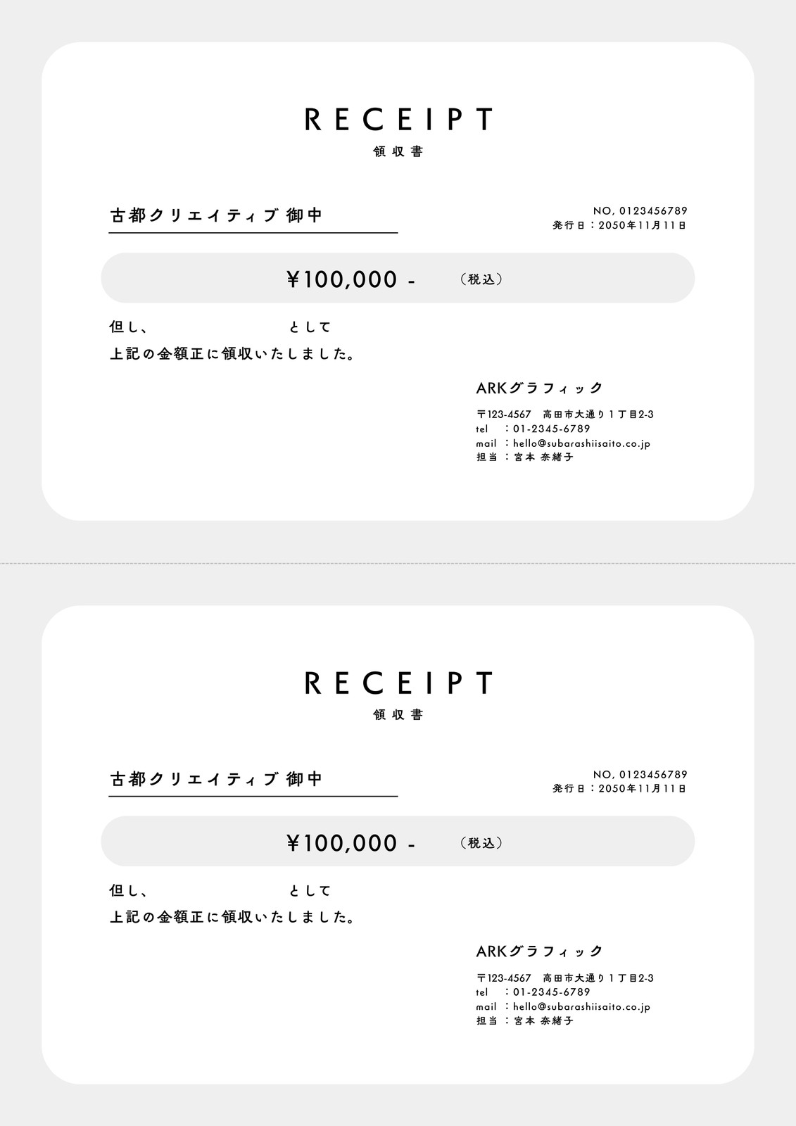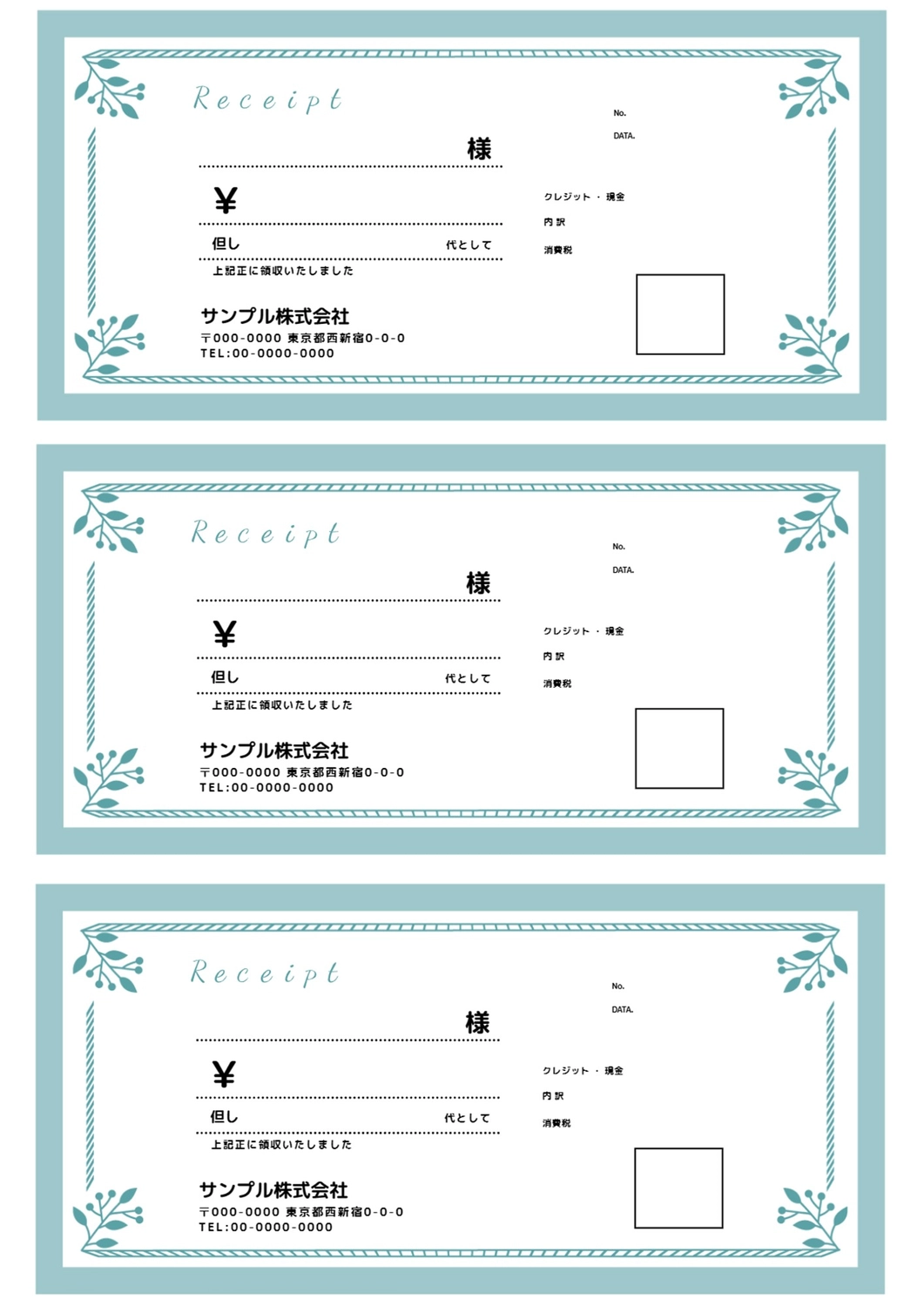 オシャレな領収書「A4・3枚・Excel・Word・PDF」手軽&簡単に使えるテンプレート。