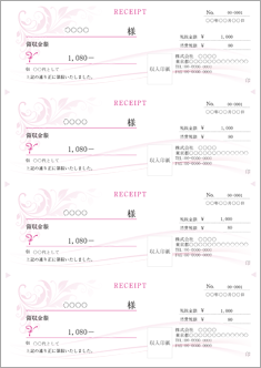 領収書 A4 4枚・おしゃれ・エレガントピンク 」のテンプレート 書式 無料ダウンロードビジネスフォーマット 雛形 のテンプレートBANK。
