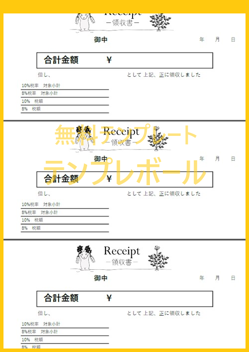 かわいい&おしゃれな領収書のテンプレート・Excel・Wordで簡単編集イラストボックス「プレミアム」テンプレート。
