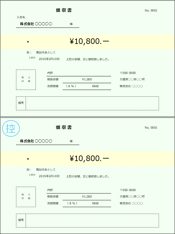 領収書エクセルテンプレート・サンプル 無料 ・作成・書き方。