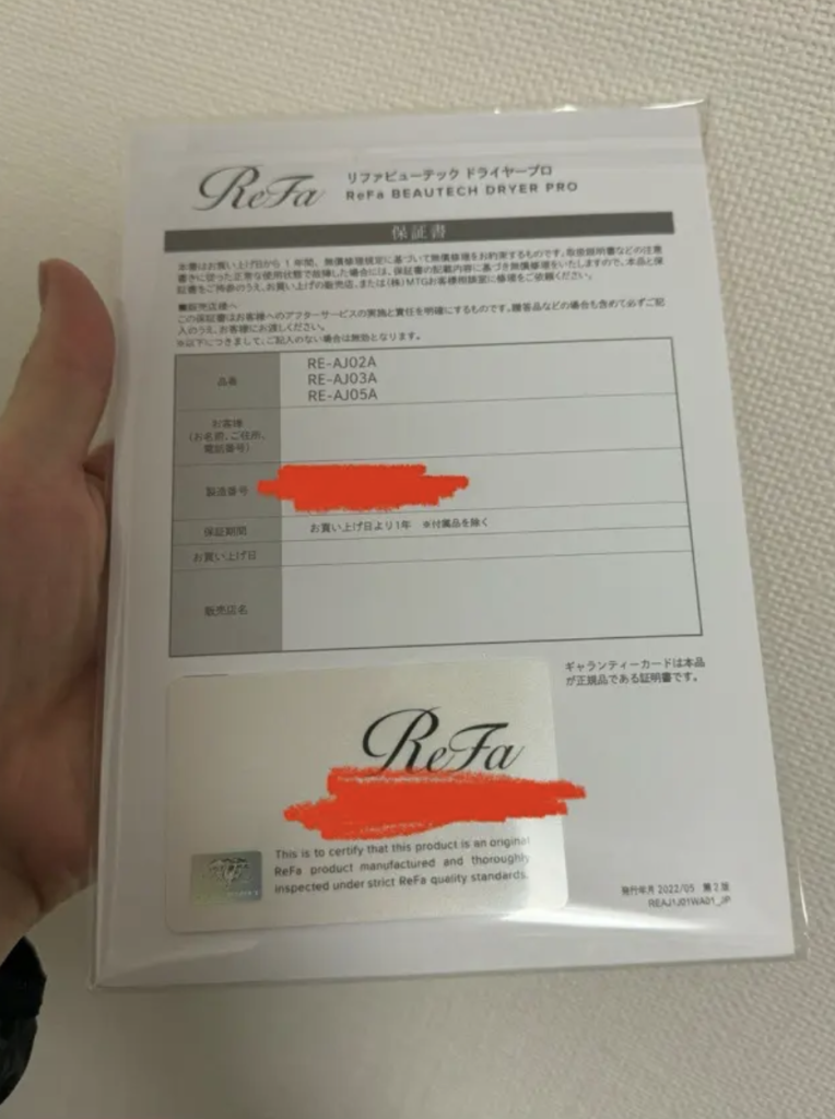 動画 リファの正規品・本物にはギャランティカードが付いてます!yukolog。
