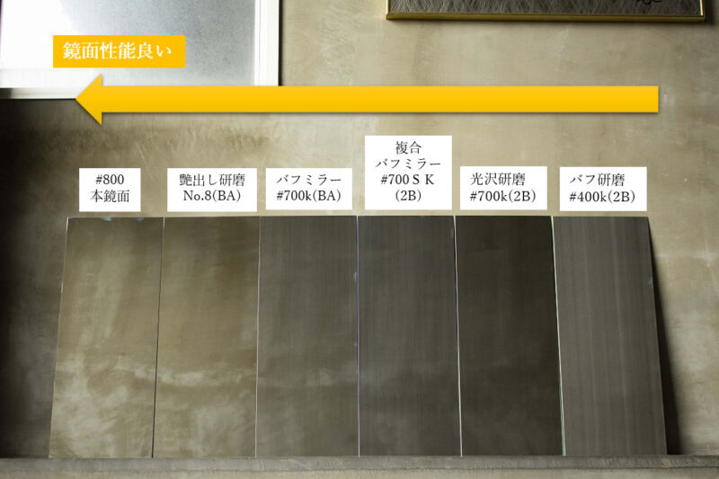 ステンレスミラー見え方の違いデザイン金属ライブラリ produced by MAKO。