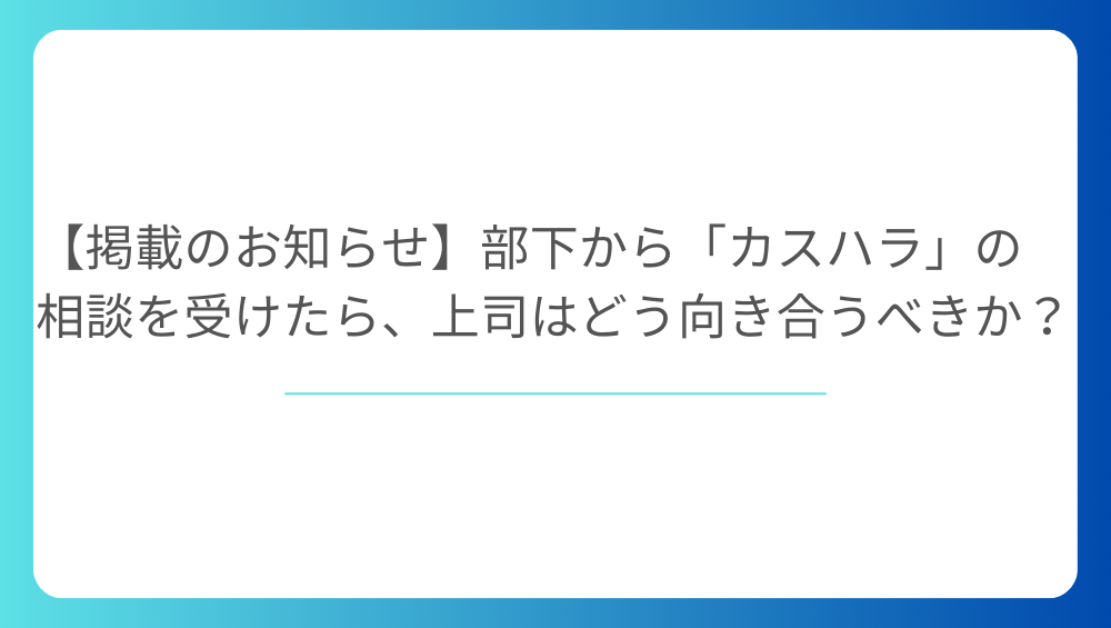 掲載のお知らせ 部下から「カスハラ」の相談を受けたら、上司はどう向き合うべきか? - 山田真由子社会保険労務士事務所 滋賀県草津市。